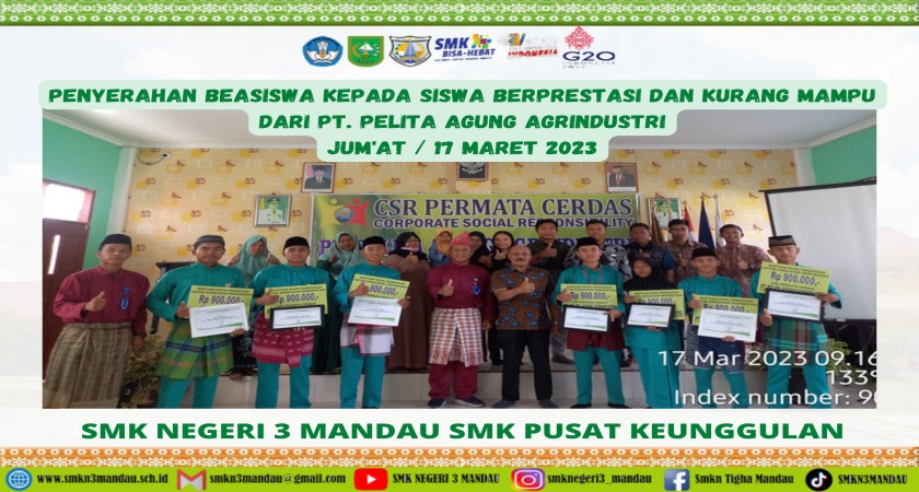 Penyerahan beasiswa kepada siswa/i berprestasi dan kurang mampu dari PT. Pelita Agung Agrindustri